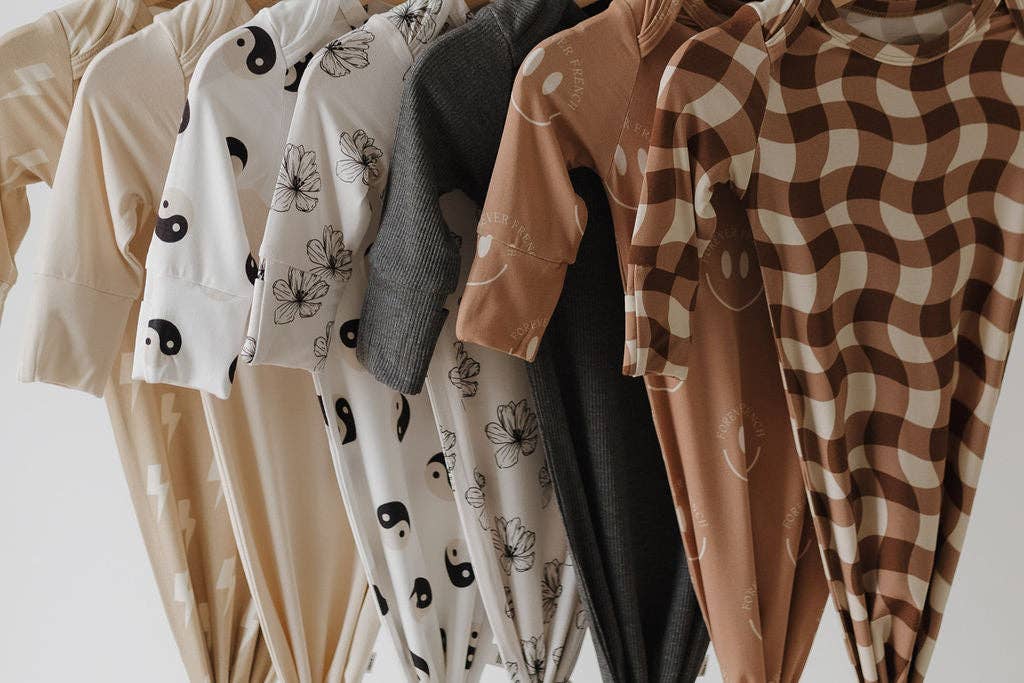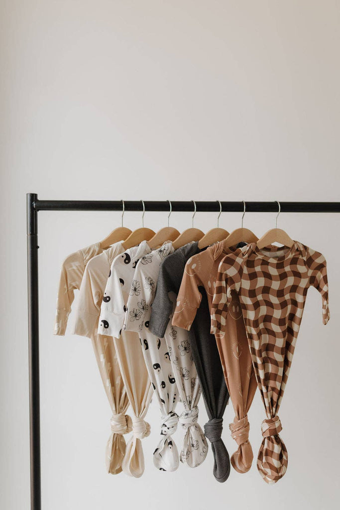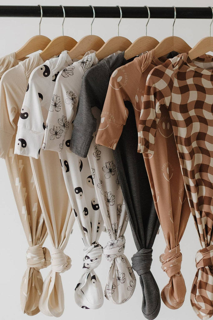 These gowns are a newborn essential. Made with the softest bamboo that is a dream on newborn skin. The knotted bottoms make diaper changes a breeze.