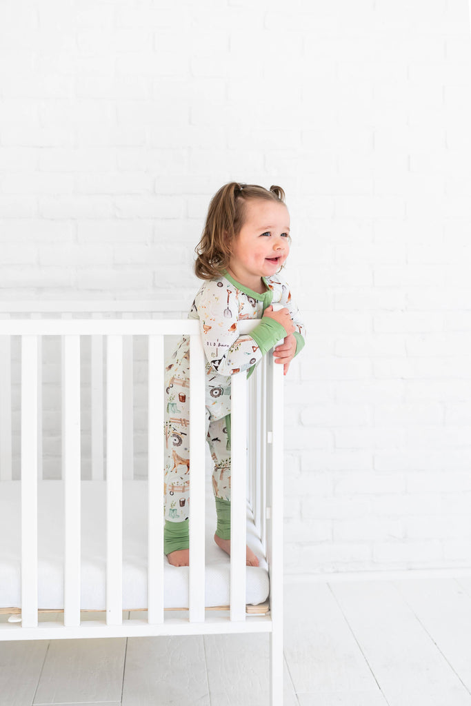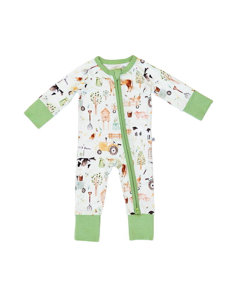 Features: * Buttery soft bamboo - perfect for sensitive skin * Two-way zipper for easy diaper changes * Fold-over hand and feet cuffs * Printed tag so there's never any itchy scratchies around the neck * Breathable fabric for year-round wear * Designed with extra stretch to fit 3x longer than your average pajama * Fabric : 95% Bamboo Viscose, 5% Spandex * No flame retardants or chemicals Care: Machine Wash Cold Hang to Dry or Tumble Dry Low Note: Like some other bamboo brands, our pajamas run larger than your standard cotton pajamas. Please check our size chart before purchasing!