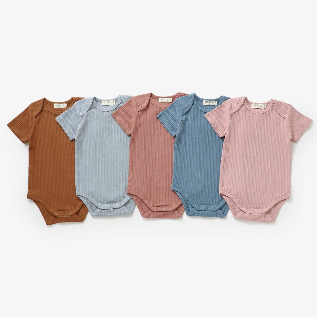 The Bobbi, our short-sleeved ribbed bodysuit, is here! Available in all of the same five colors as the Coby. Same wonderful fabric that is 95% cotton, 5% spandex, and made with GOTS certified yarn. The Bobbi also holds the OEKO-TEX Standard 100 certification. Machine washable. Available in sizes 0-3 months through 6-12 months.