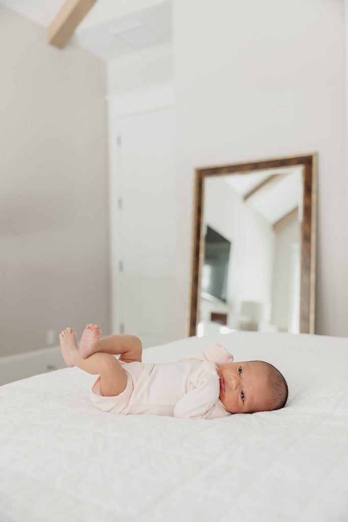With buttery soft fabric that's gentle against baby's skin, these long sleeve bodysuits are the perfect everyday wardrobe piece. Available in trend-driven prints, they feature overlap shoulders for easy on and off. Our smaller sizes also include fold-over mittens to prevent scratching. Wear them for naptime, playtime, or anything in between!