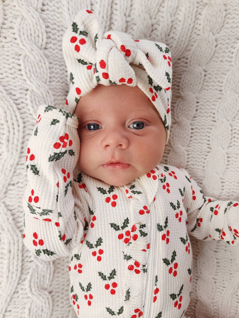 Have a holly jolly Christmas with our delightful holly print, bringing a touch of tradition and festive cheer to every little one's celebration this festive holiday season! Easy Zip for quick changes!