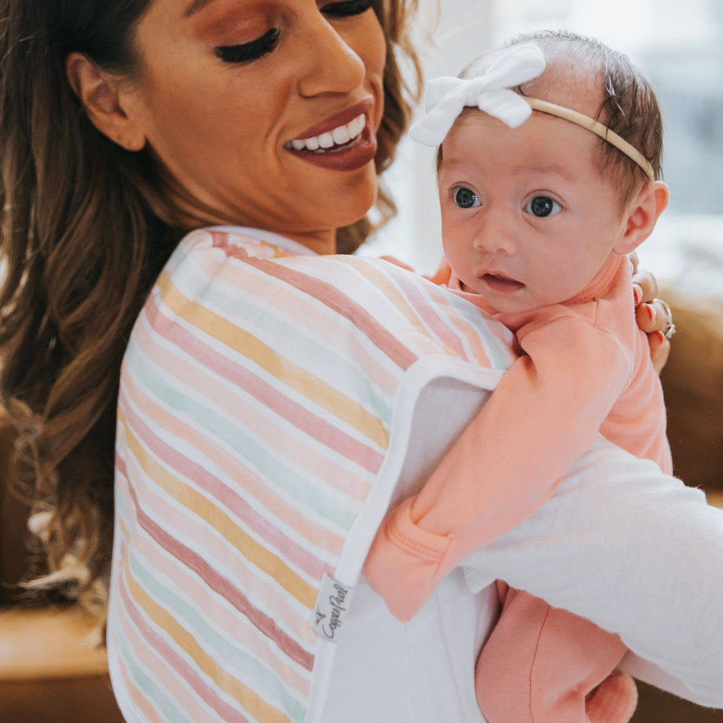 * At Copper Pearl we pride ourselves on making high quality products that always look great on babies, moms, or in your nursery. Our burp cloths are simple, modern, and sure to elevate any baby's style.