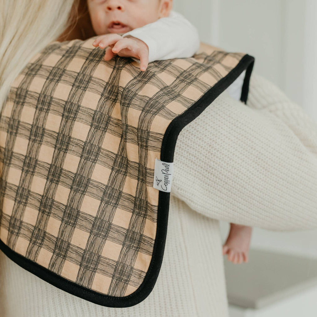 * 100% COTTON FRONT AND BACKING * Our burp cloths are designed with baby’s comfort in mind. That’s why we created them with 100% ultra-soft cotton layers on the front (patterned) and back (plain white). You can feel confident that baby will feel cozy against your shoulder while burping. * ABSORBENT FLEECE LAYER * A middle fleece layer provides superior absorbency, stopping drool and spit up in their tracks. The dreaded leakage onto parent clothing is a problem of the past! * OVERSIZED 21x10 INCH SIZE * Our burp cloths come in a generous 21x10 inch size, providing greater shoulder coverage (and less outfit changes) for Mom and Dad. * HIGH QUALITY AND TRENDY DESIGNS * At Copper Pearl we pride ourselves on making high quality products that always look great on babies, moms, or in your nursery. Our burp cloths are simple, modern, and sure to elevate any baby's style. * PAIR PERFECTLY WITH COPPER PEARL BANDANA BIBS * Our trendy burp cloths are designed in the same prints and patterns seen on