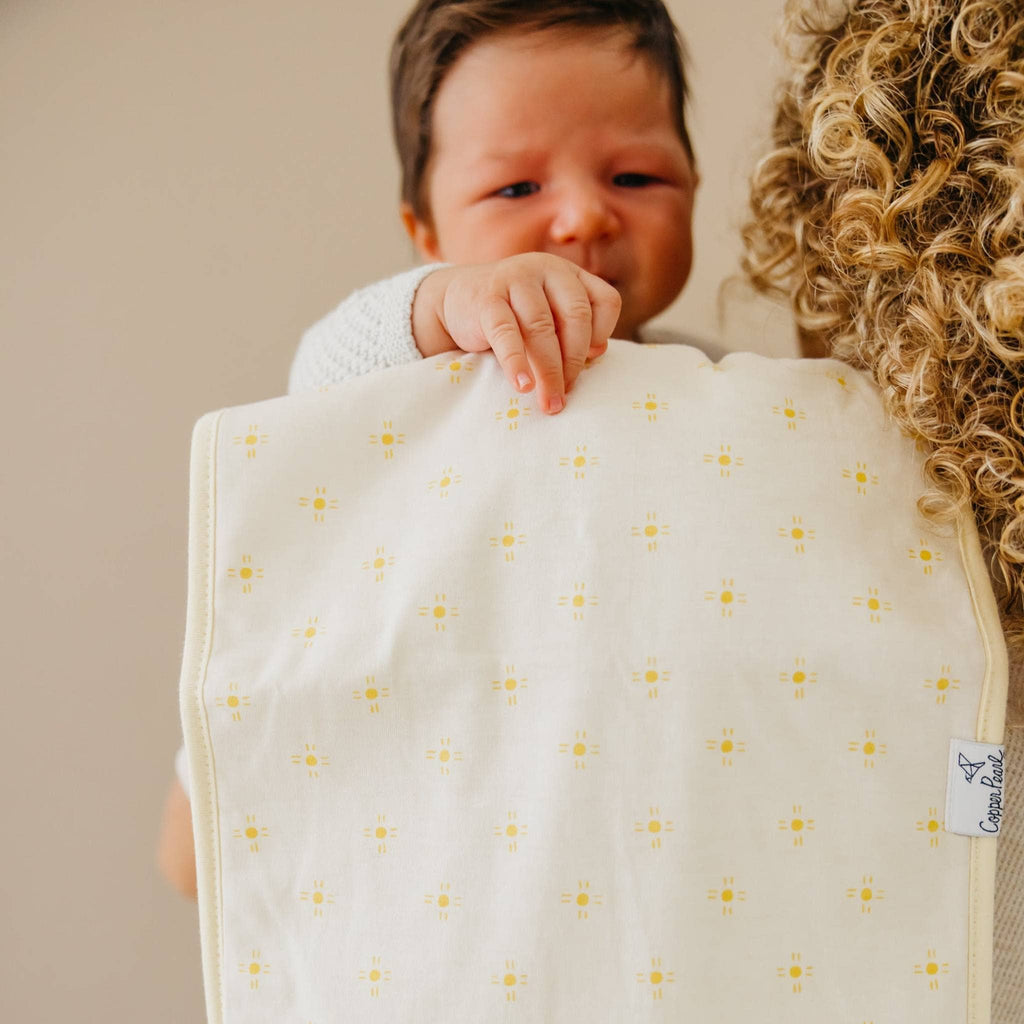 * At Copper Pearl we pride ourselves on making high quality products that always look great on babies, moms, or in your nursery. Our burp cloths are simple, modern, and sure to elevate any baby's style.