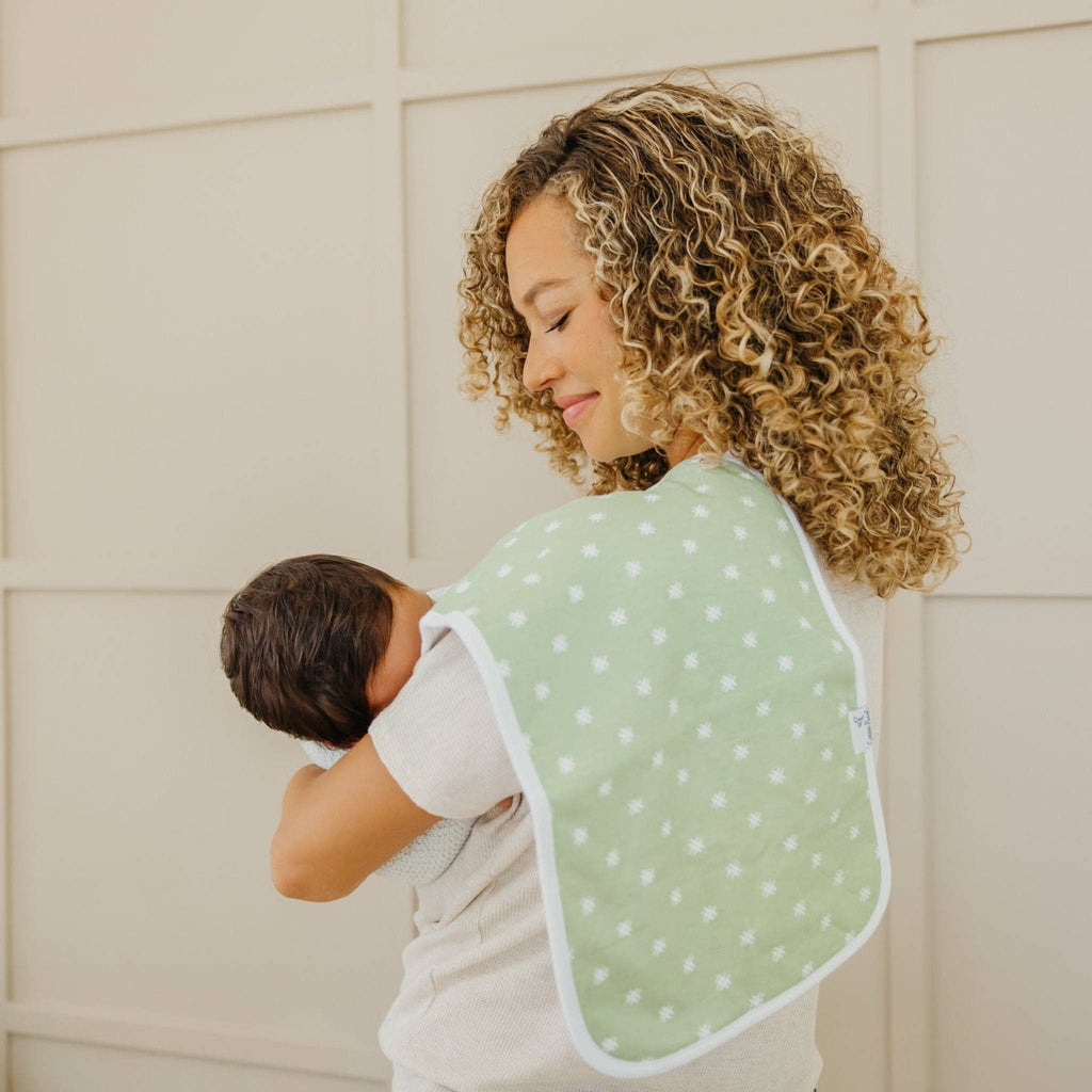 * Our burp cloths are designed with baby’s comfort in mind. That’s why we created them with 100% ultra-soft cotton layers on the front (patterned) and back (plain white). You can feel confident that baby will feel cozy against your shoulder while burping.
