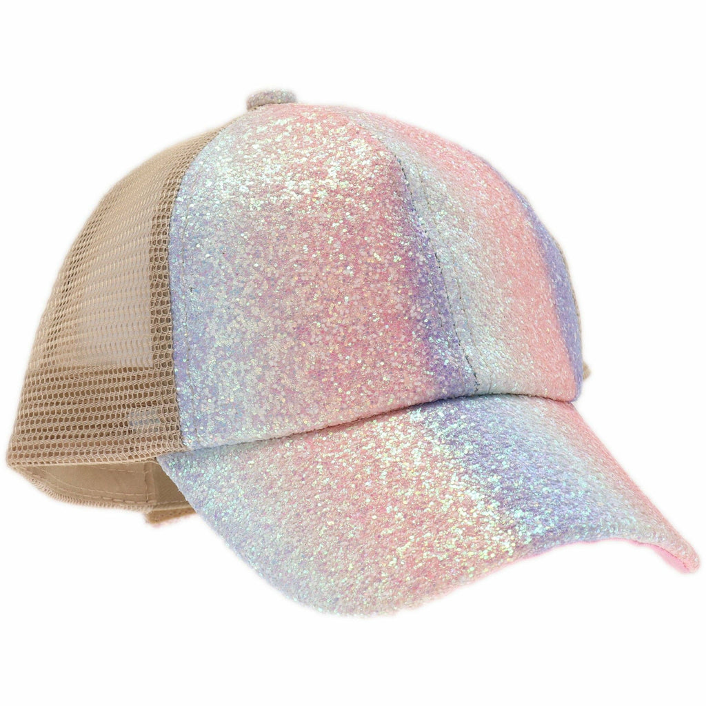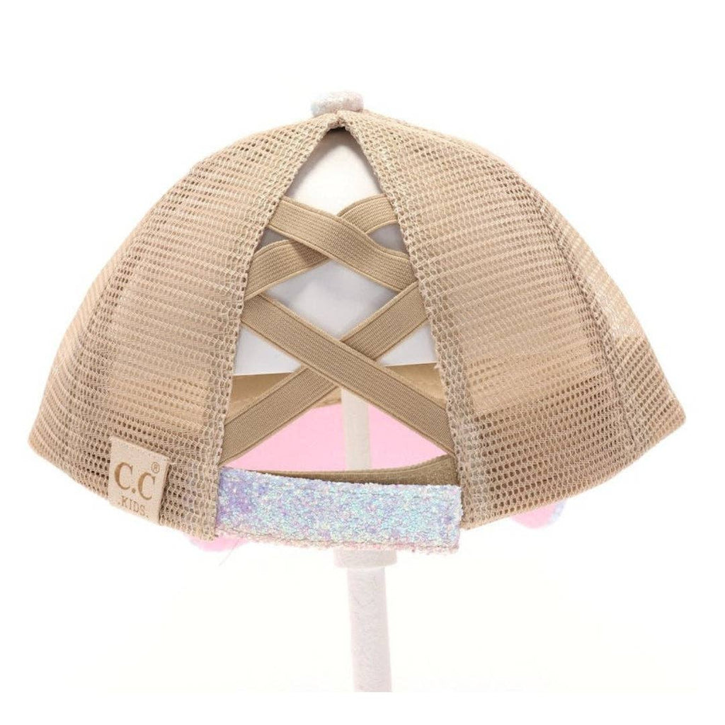 KIDS Glitter Ombre Criss-Cross High Ponytail CC Ball Cap
