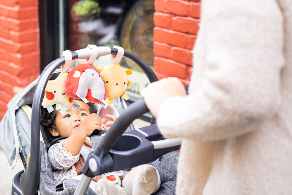 • Your little baby girl or baby boy will love playing with these adorable on-the-go star, sun and rainbow stroller or baby car seat toys by Pearhead!