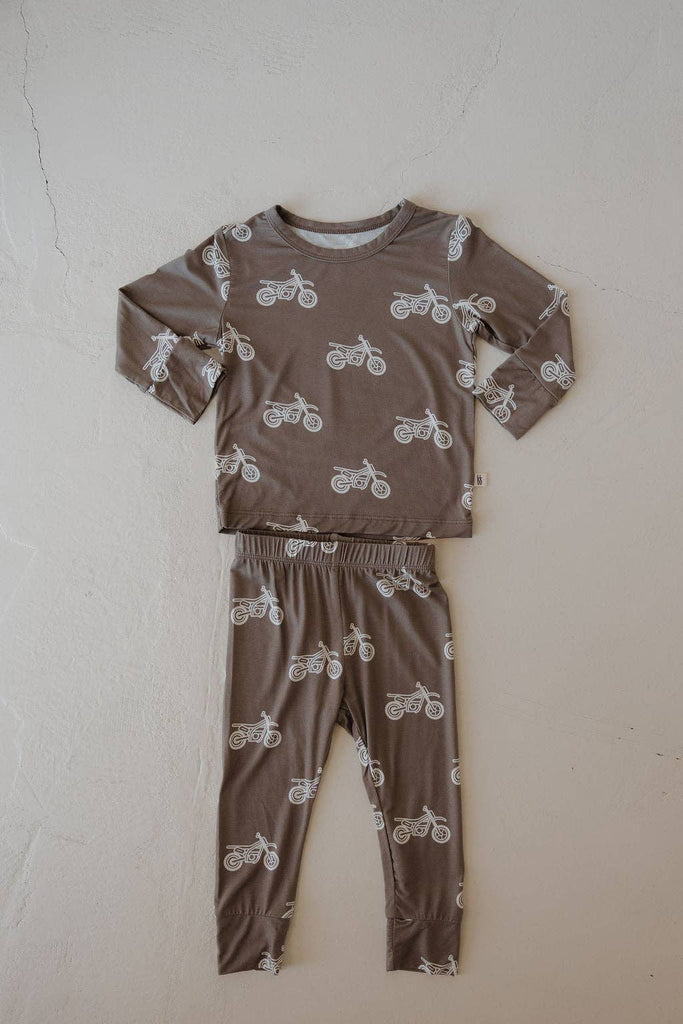 Sleep easy with our dirt bike sleepy-time set! Crafted with bamboo and featuring a cozy two-piece design, this adorable lounge set will keep your little one comfy and secure. it's the perfect choice for a night full of sweet dreams or a day of adventure!