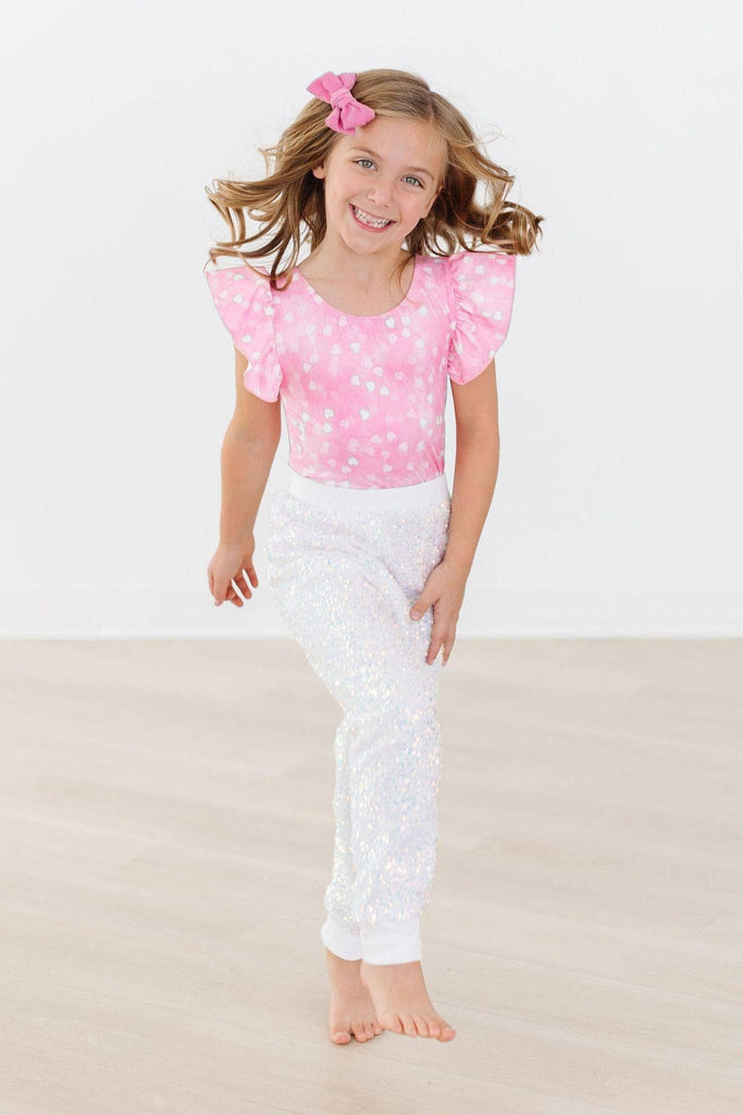 Our Sequin Joggers are a dazzling addition to any wardrobe. These joggers are designed to make everyday feel like a special occasion. Soft elastic waist, cuffs, and full lining make these joggers both comfortable and fashionable. Mix and match with our sequin jackets, tees, and leotards.