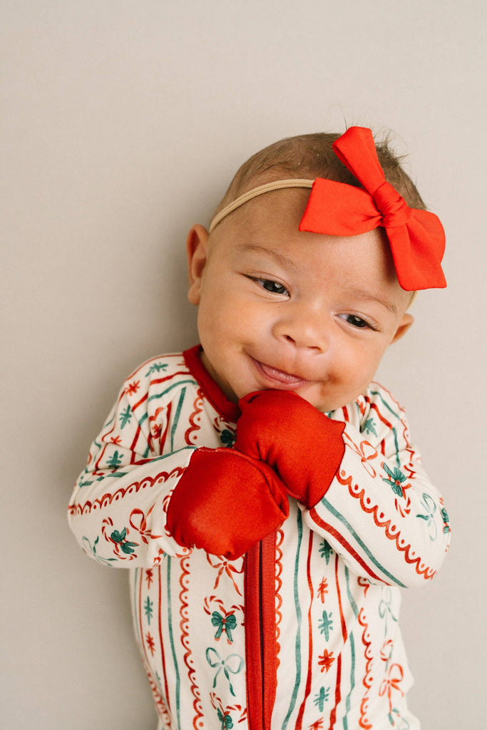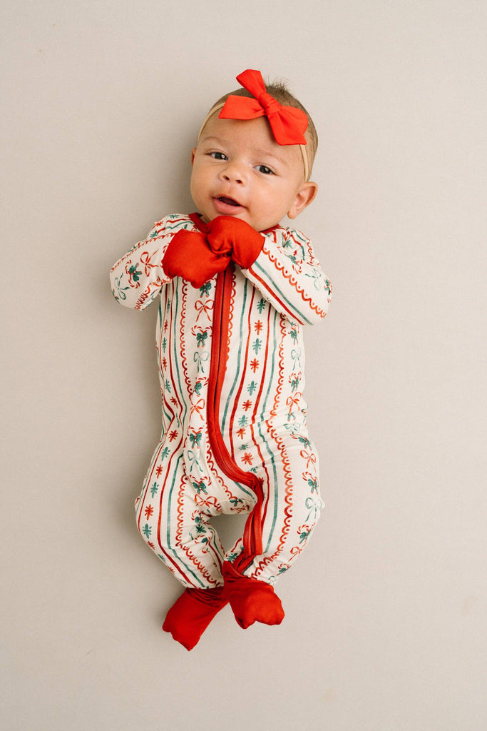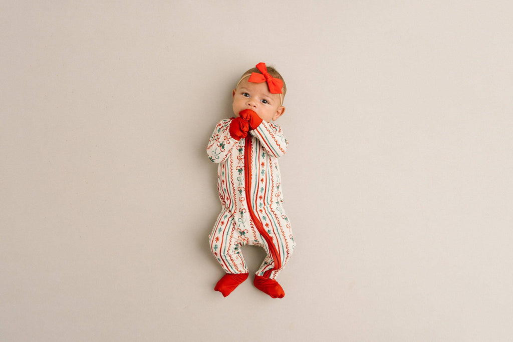 Welcome to Little One Shop, where we specialize in creating modern, comfortable, and affordable baby clothing. Our Christmas Dainty Bow Bamboo Sleeper is a perfect example. This Sleepsuit for babies is designed to ensure your little one sleeps in style and comfort this festive season. Crafted with care and attention to detail, it showcases our commitment to quality. We're sure you'll love this charming sleeper as much as we do.