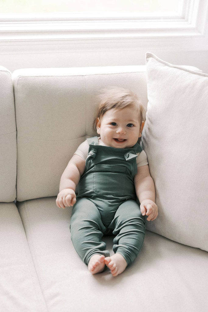 Everyday comfort, elevated. These buttery-soft bamboo longalls are designed for easy movement, cozy naps, and all the moments in between. Adjustable tie straps and leg snaps make changing a breeze, while the front pocket adds a touch of charm.